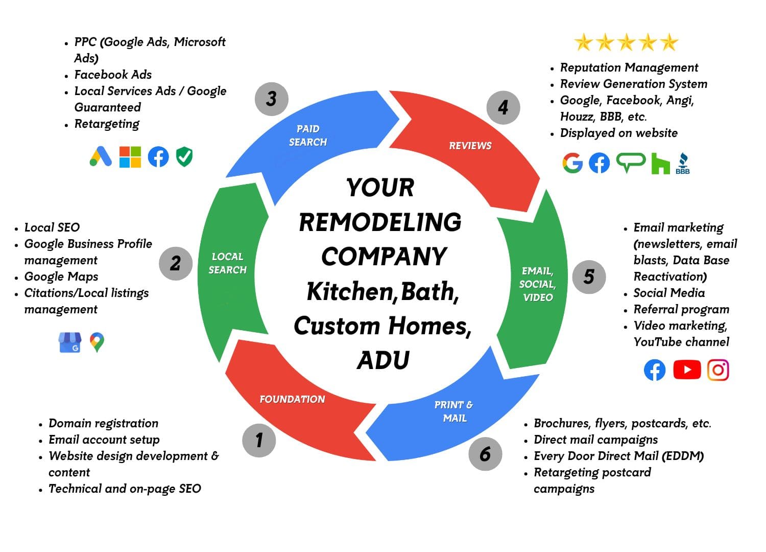 We’re a family-owned digital marketing agency that only works with kitchen and bathroom remodeling companies and general contractors. Our mission is to elevate remodelers by getting you exclusive, qualified leads and we work really hard to achieve that for you!